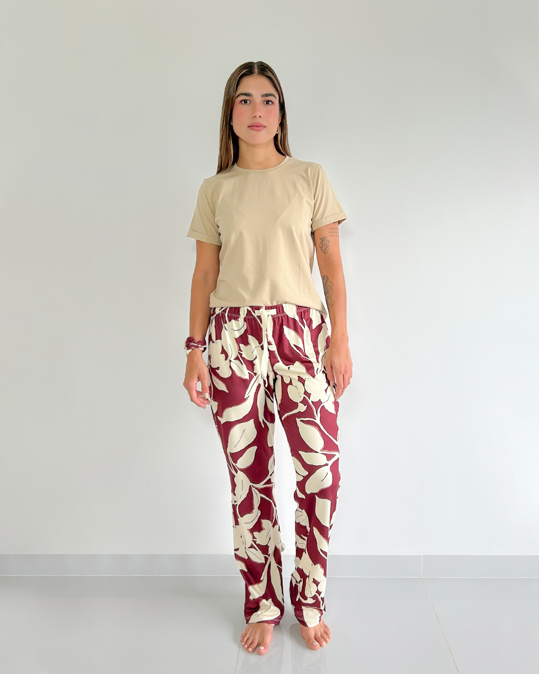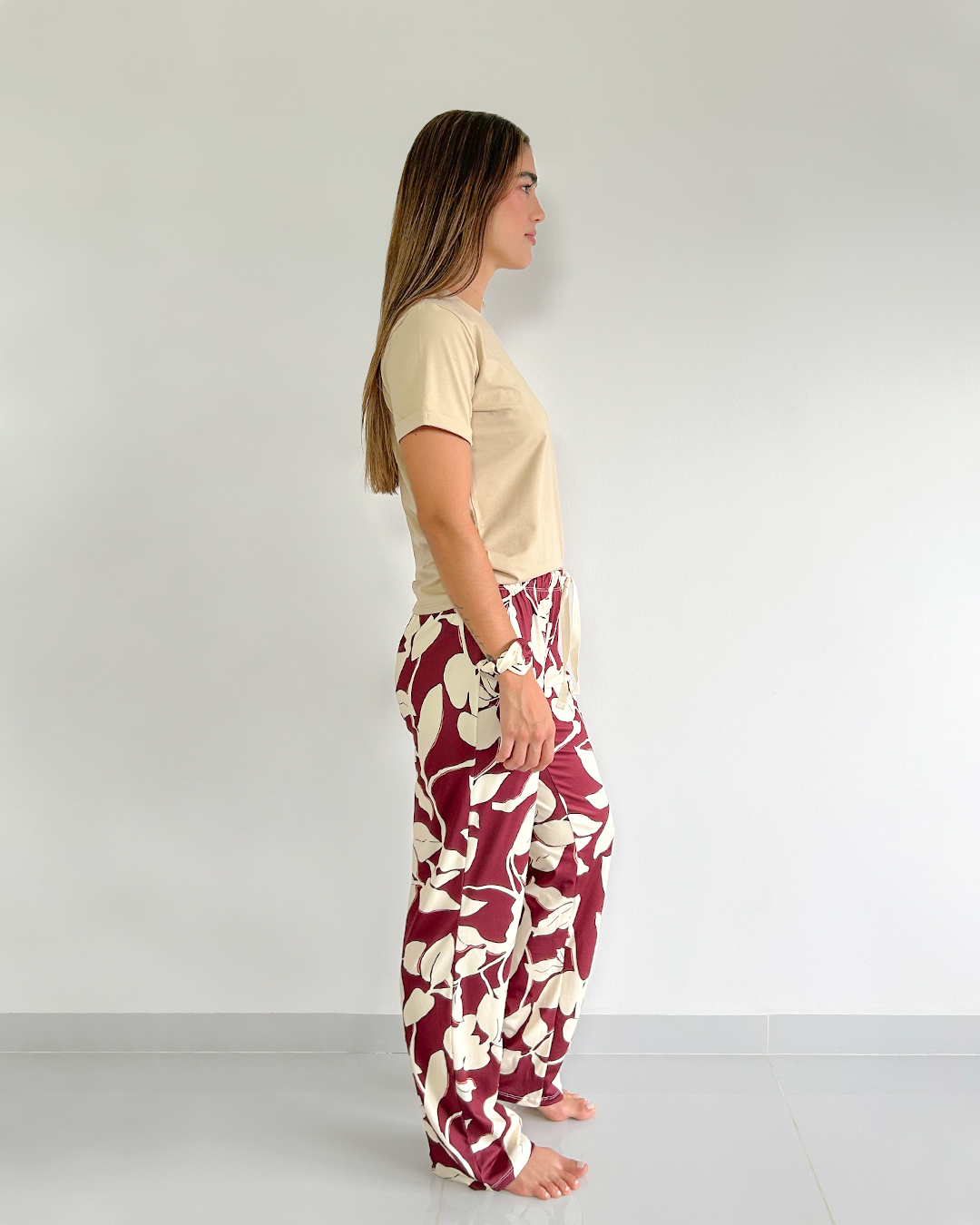 Pantalón de pijama para mujer con motivo de hojas en tela fresca y suave, perfecto para un mejor descanso. Cuenta con pretina en resorte que se ajusta a tu cuerpo asegurando mayor comodidad. Su fit es amplio y holgado lo que permite un mejor descanso a la hora de dormir.