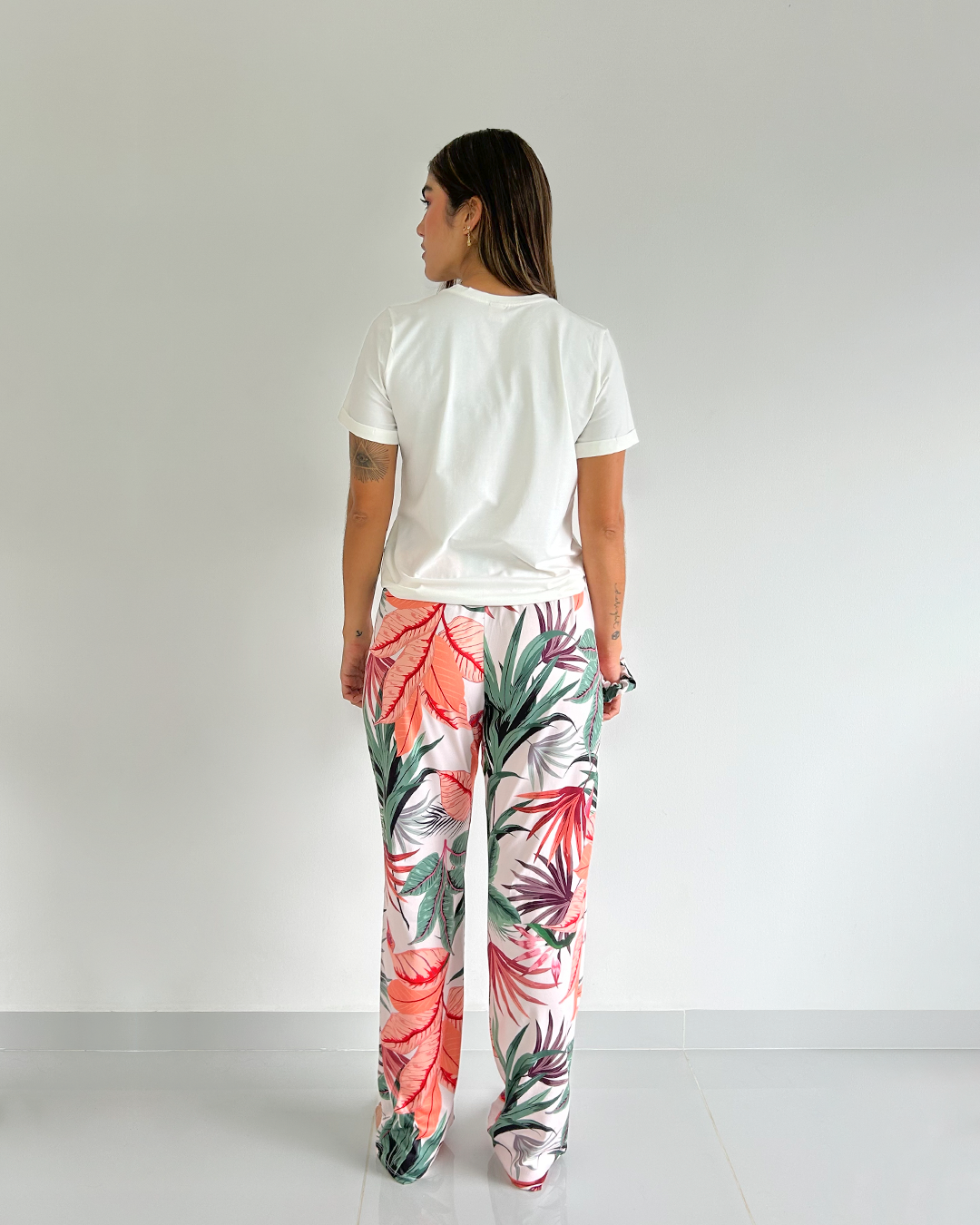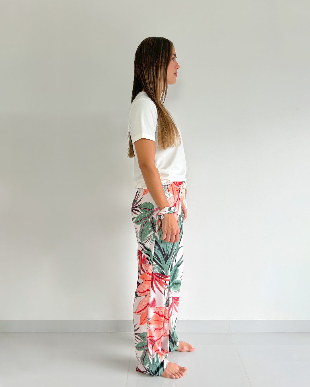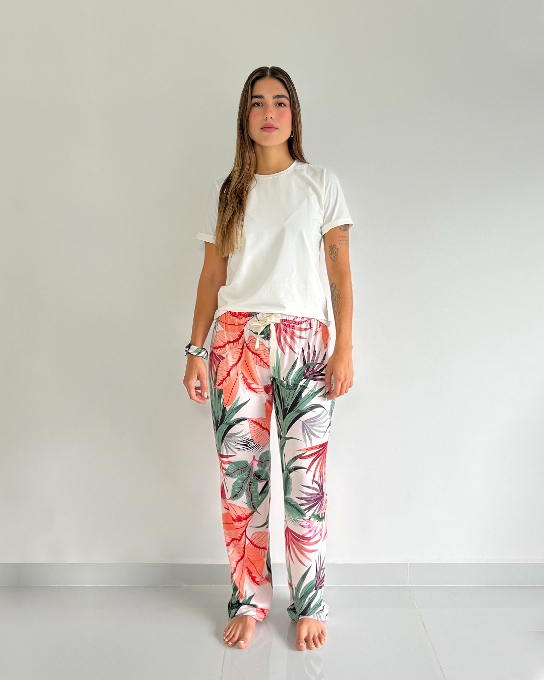 Pantalón de pijama para mujer con motivo de hojas en tela fresca y suave, perfecto para un mejor descanso. Cuenta con pretina en resorte que se ajusta a tu cuerpo asegurando mayor comodidad. Su fit es amplio y holgado lo que permite un mejor descanso a la hora de dormir.